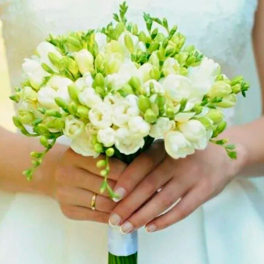 Одна из ценнейших особенностей белых фрезий – их долгая свежесть в срезке, что делает их идеальным выбором для свадебных торжеств, которые зачастую длятся несколько часов или даже целый день. При правильном уходе букет сохраняет презентабельный вид, оставаясь ярким и живым, что особенно важно для такого значимого аксессуара.