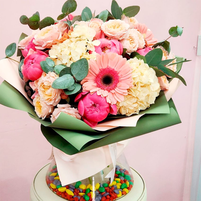 Обращаем ваше внимание, что наполнение композиции может несущественно корректироваться в зависимости от сезона и особенностей текущей поставки. При этом общий стиль и выбранная цветовая палитра сохраняются неизменными.