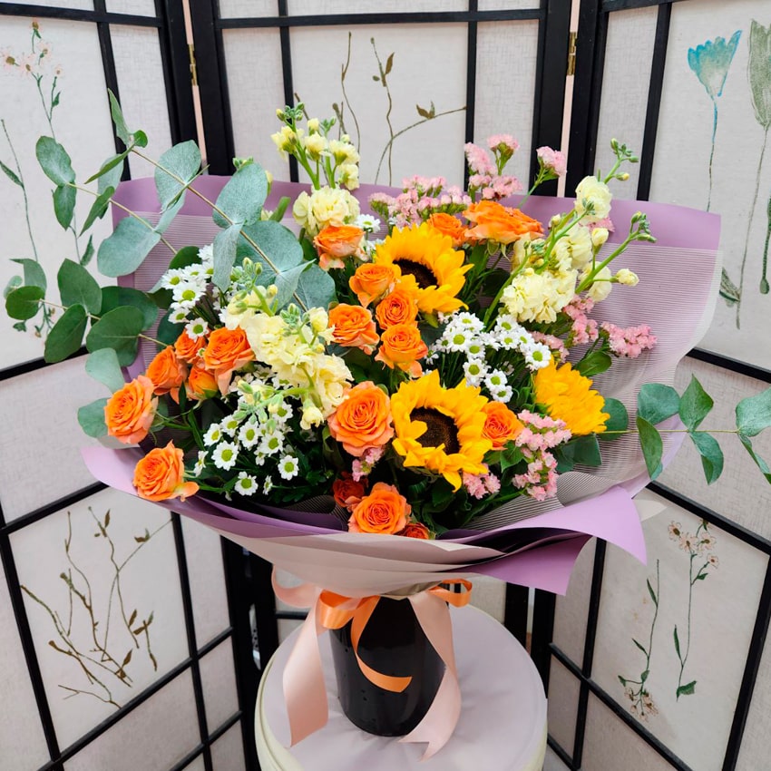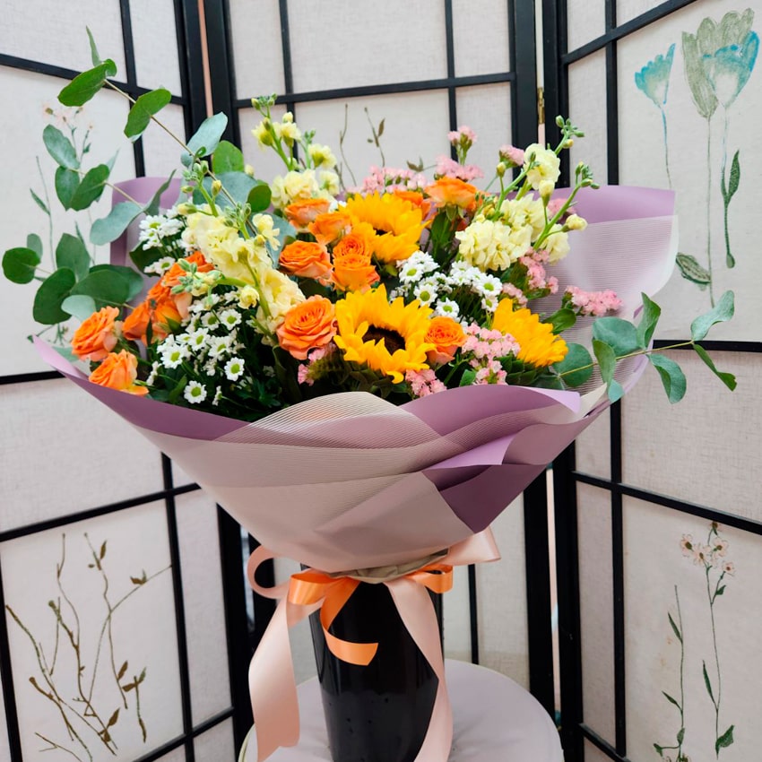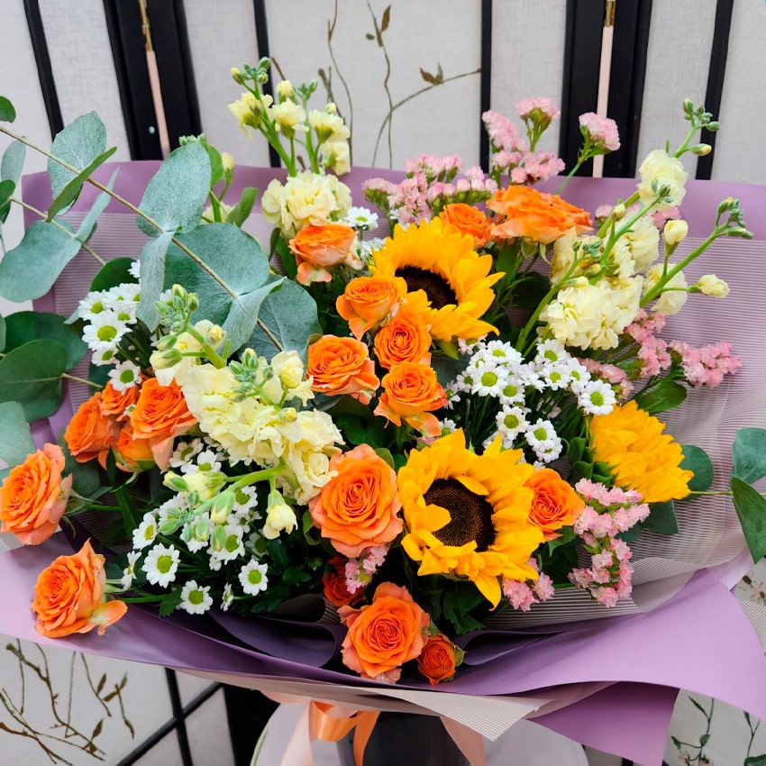 Когда современная флористика встречает многогранную натуру, рождаются образы, воплощённые в стильной цветочной композиции. Такой микс — это не просто подарок, а настоящее настроение, заключённое в ароматных лепестках. В данной коллекции гармонично переплелись солнечно-жёлтые, жизнерадостные оранжевые, чувственные розовые и чистосердечные белые оттенки — сочетание, которое преображает пространство и вносит в повседневность новую свежесть.