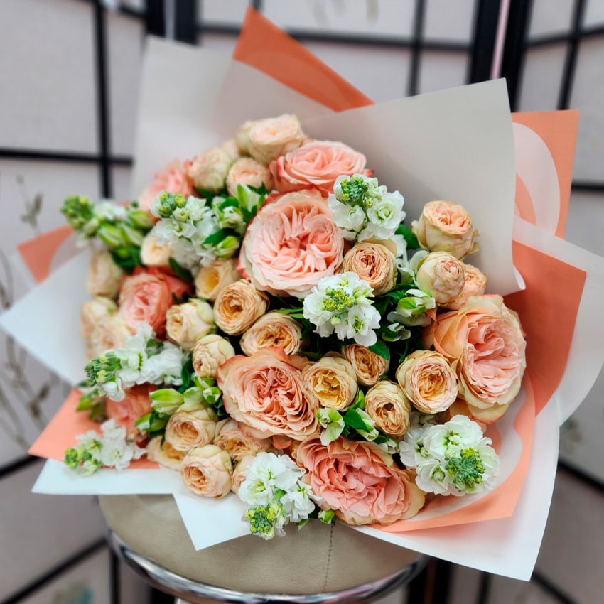 Кустовая пионовидная роза — центральный элемент композиции, который покоряет своей красотой и аурой. Эти цветы с широкими, пышными лепестками символизируют любовь, страсть и романтику. Их белоснежный цвет предвещает нежность и искренность, а во многом это именно то, что мы ищем в цветочных подарках. Кустовая форма делает букеты из этих роз особенно выразительными и объемными, ведь каждая веточка словно говорит об уникальности данного момента.