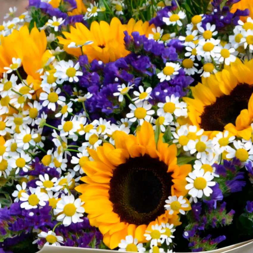 Происхождение каждого растения тоже неслучайно. Солнечные красавцы родом из широких полей Северной Америки, где они впитывают энергию и влагу земли, следуя за движением небесного светила. Миниатюрные танацетумы встречаются на европейских лугах, растут свободно, под лёгким ветром. Статица предпочитает южные регионы, славится своей стойкостью и способностью долго сохранять форму и цвет даже в сухих композициях. Благодаря такому сочетанию букет приобретает характер – он живой, выразительный, долгоживущий.