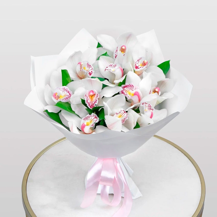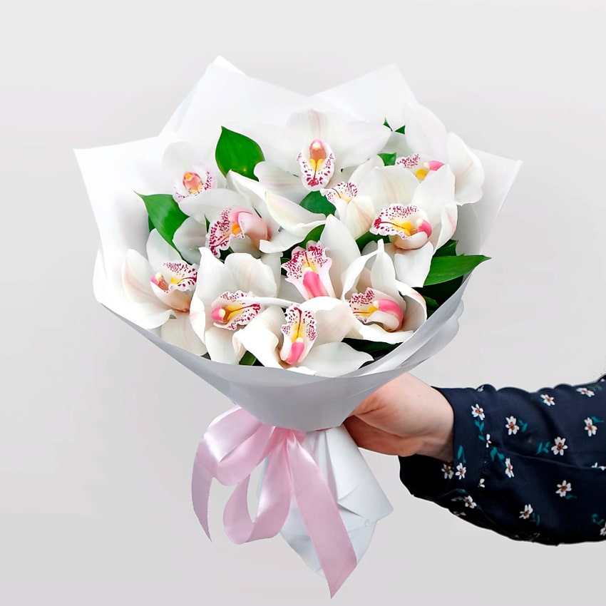 Орхидея родом из тропиков и субтропиков, где она обитает на деревьях или в расщелинах скал, привыкнув к яркому свету и чистому воздуху. Это растение, овеянное легендами, во всех культурах несёт символику красоты, возвышенности намерений, бесконечной гармонии. Белый цвет лепестков олицетворяет невинность, искренность и уважение, а включение в композицию разноцветных акцентов создаёт яркую игру контрастов, наполняя букет живой энергетикой.