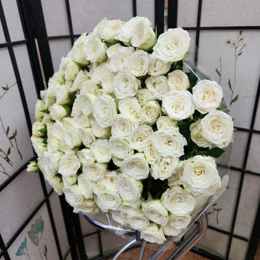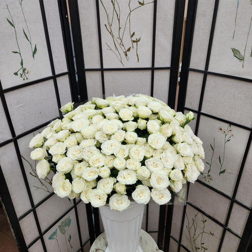В составе монобукета белая кустовая роза раскрывает свой характер максимально полно. Её природная грация не требует сложных дополнений. Несколько стеблей создают чувство чистоты и светлого спокойствия, передают состояние гармонии и внутреннего равновесия. Это цветок, который говорит мягко, но выразительно, и делает любой момент чуть более светлым.
