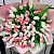 В основе этой композиции – 75 роскошных тюльпанов, которые отличаются своей пышностью, многослойностью лепестков и особой игрой цвета. Бело-розовые бутоны словно перламутровое облако: плавные переходы оттенков, игра света на нежных гранях, утончённая структура каждого цветка. Пышность пионовидных тюльпанов придаёт монобукету объем, глубину и богатство, а гармоничное соотношение белого и розового создаёт ощущение лёгкости, воздушности, почти невесомой красоты.