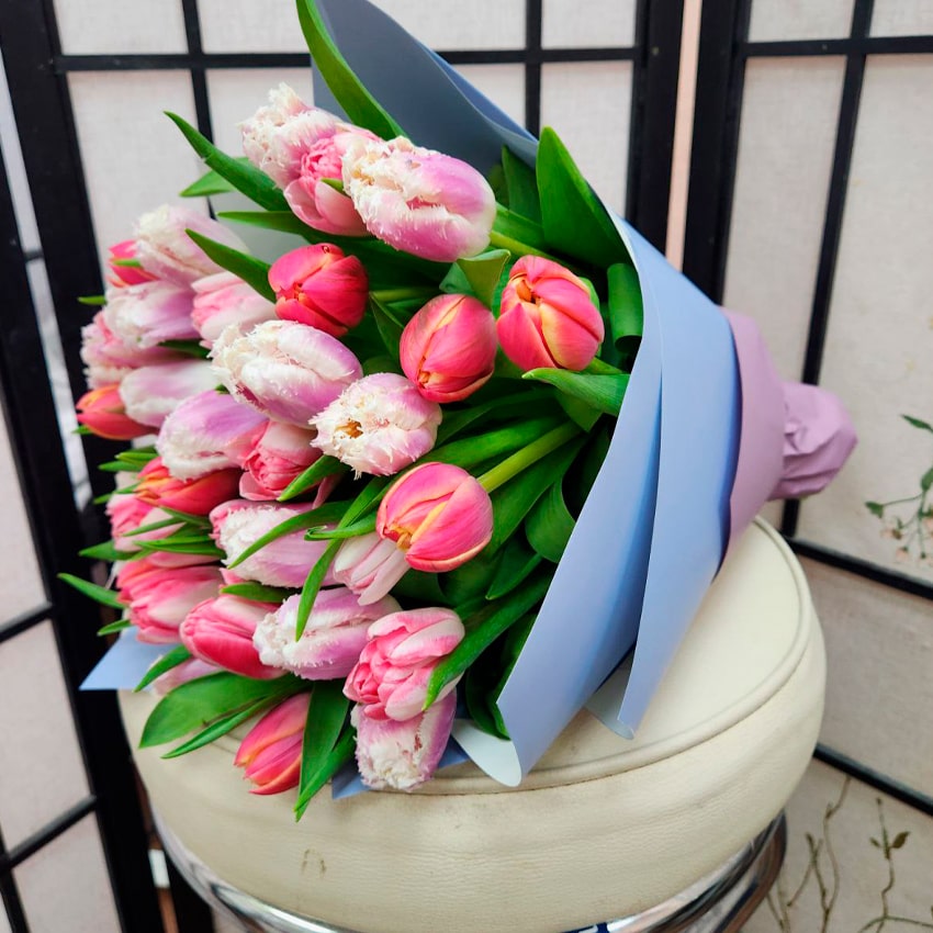 В этих композициях собраны лучшие представители тюльпанового семейства. Исключительное разнообразие оттенков — от насыщенных красных до деликатных лавандовых, от лучистых жёлтых и белых до романтичных розовых и оранжевых, — позволяет букету звучать как жизнерадостная симфония. Цветы всегда свежие, упругие, с аккуратной зелёной листвой. Благодаря правильным условиям хранения и транспортировки, каждый стебель выглядит только что срезанным, что гарантирует свежесть и продолжительный внешний вид на протяжении всей недели.