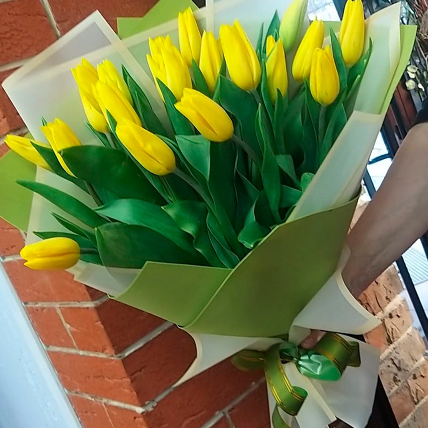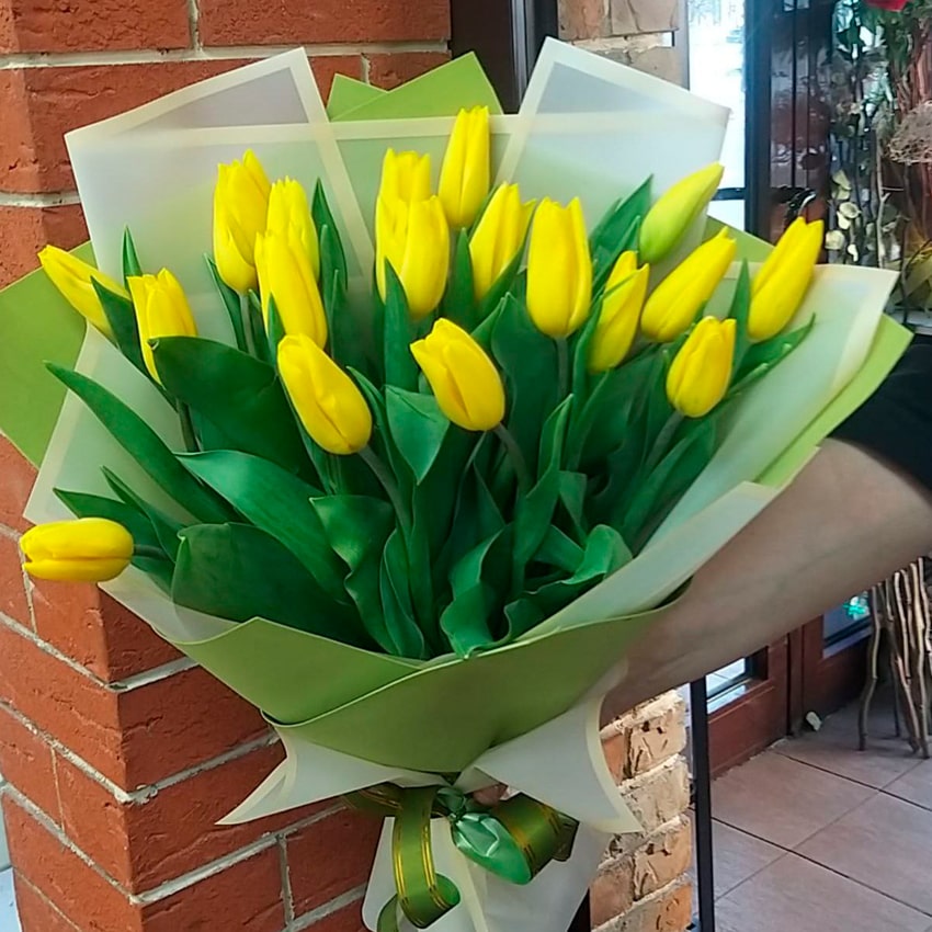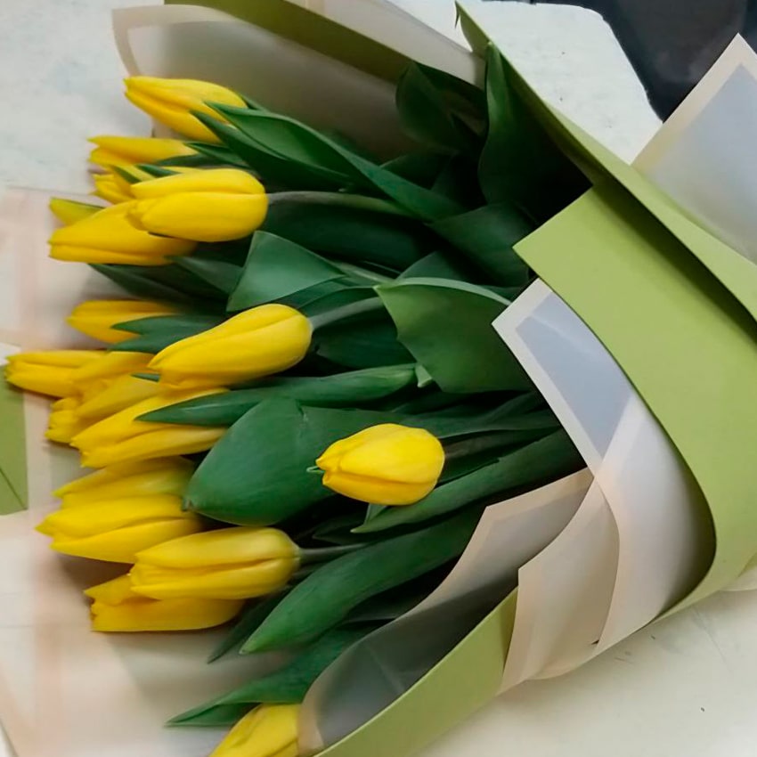 Тюльпаны с жёлтыми бутонами традиционно считаются одними из самых жизнелюбивых представителей семейства. Их лепестки отличаются бархатистой текстурой и особой нежностью. Цветы легко переносят перевозку, прекрасно сохраняются в воде, а процедура срезки проводится в самом начале раскрытия, чтобы бутоны радовали своей свежестью максимально долго. Влага — главный секрет жизни букетов, но даже в домашних условиях эти тюльпаны остаются эффектными до десяти дней, радуя глаз сочностью оттенков каждый день.