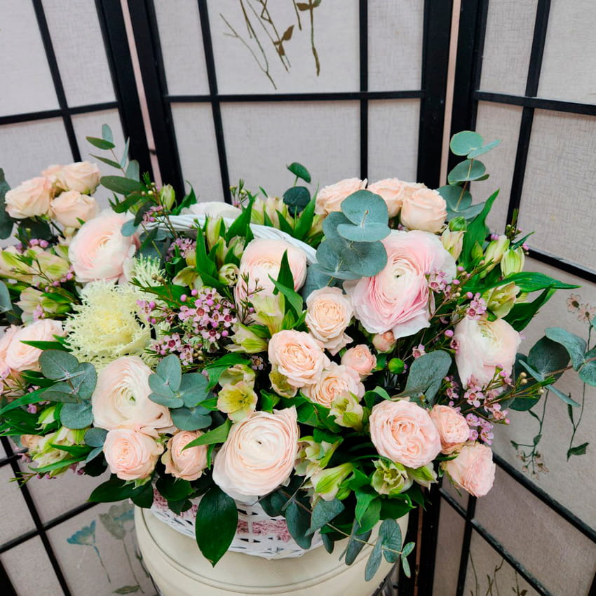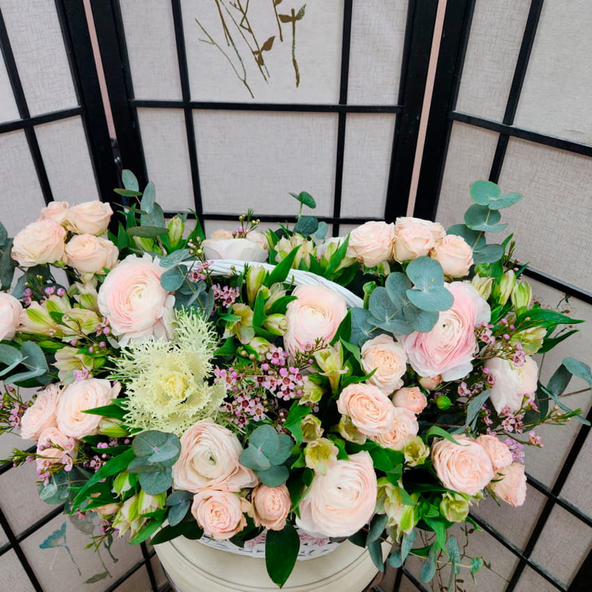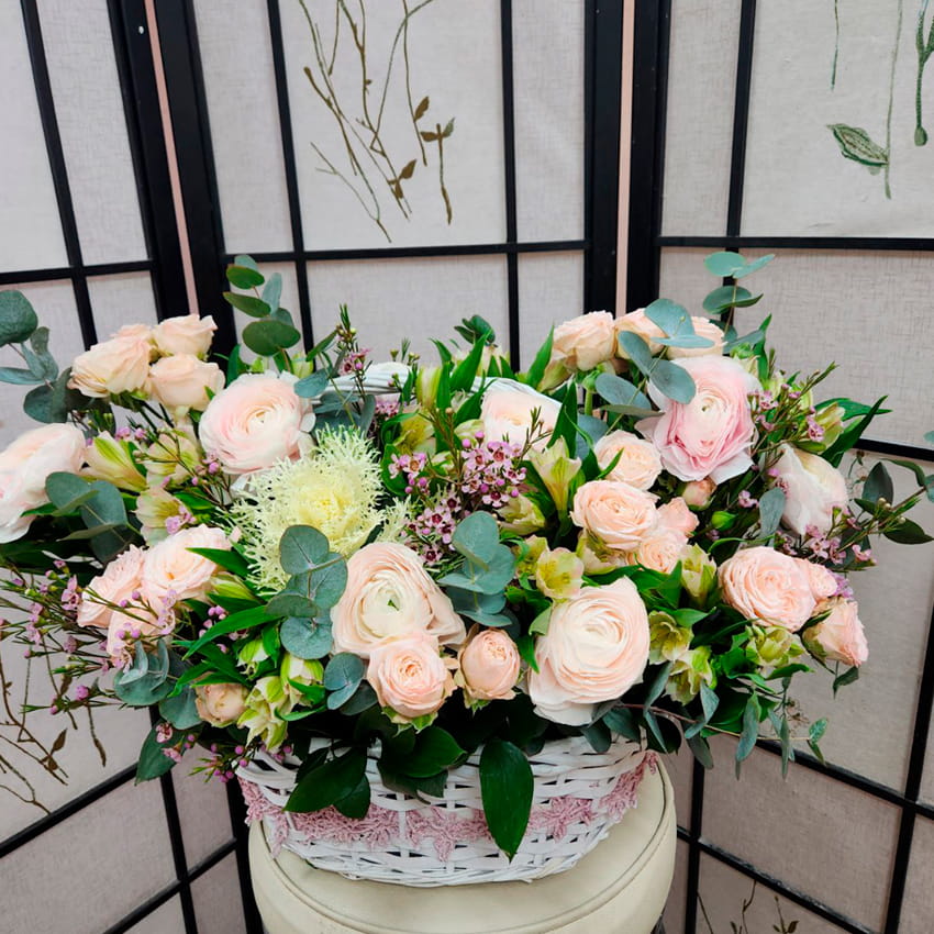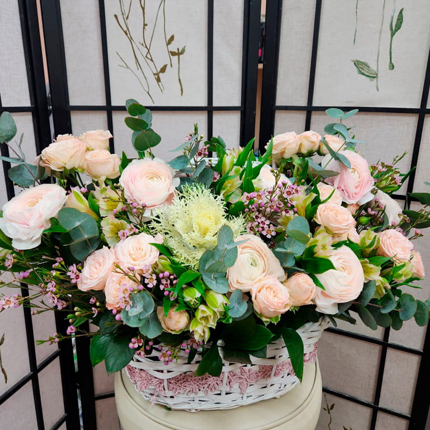 Корзина с Ранункулюсами и с Брассикой