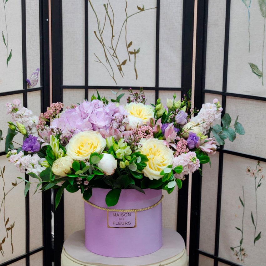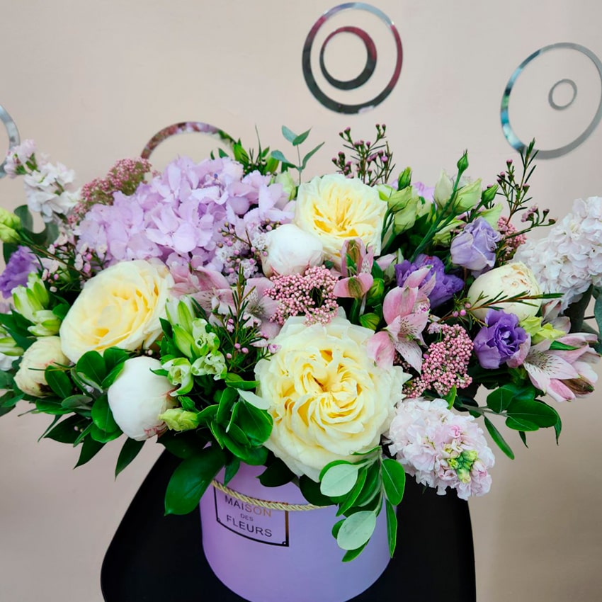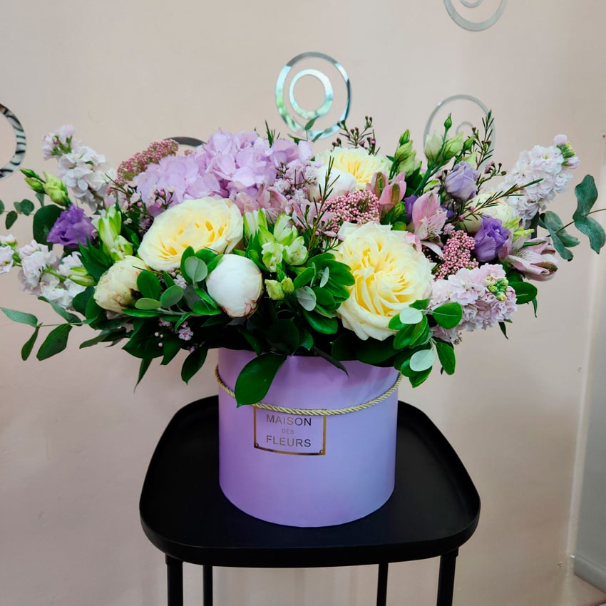 Композиции отличаются необыкновенной стойкостью благодаря свежести отборных цветов, тщательному уходу и особой «шляпной» коробке, сохраняющей оптимальную влажность. Это современное решение для украшения гостиной, кабинета или элегантного вечера.