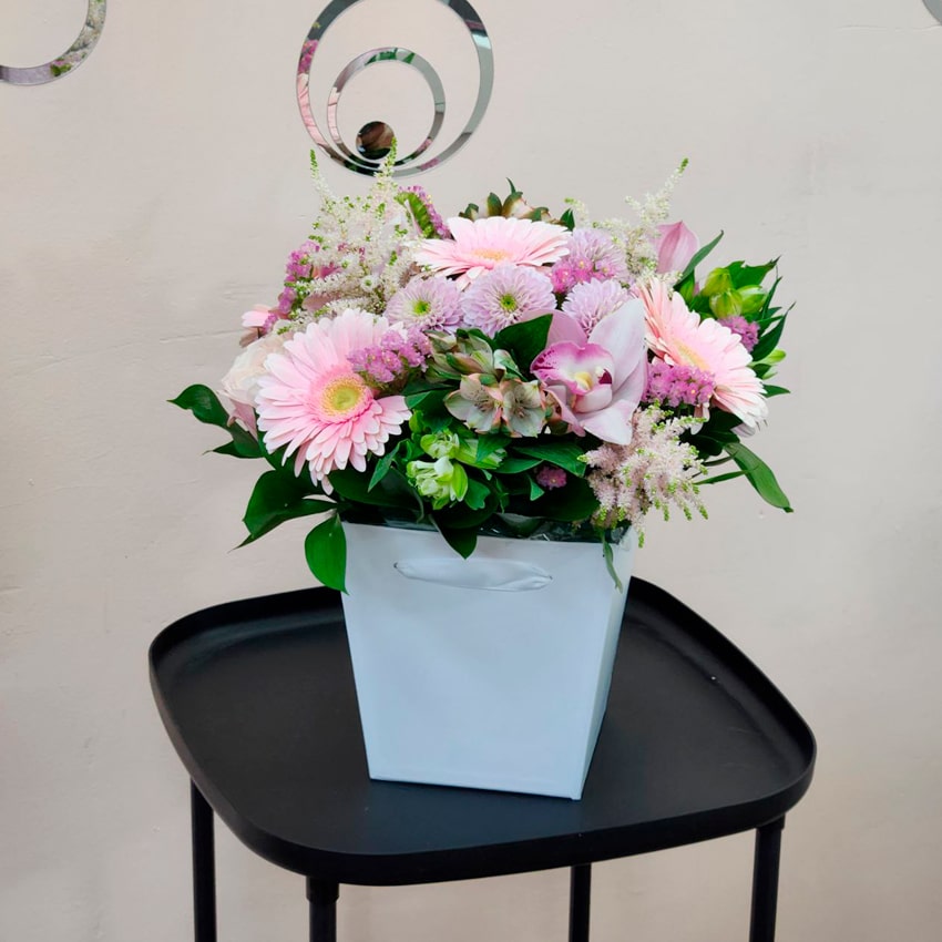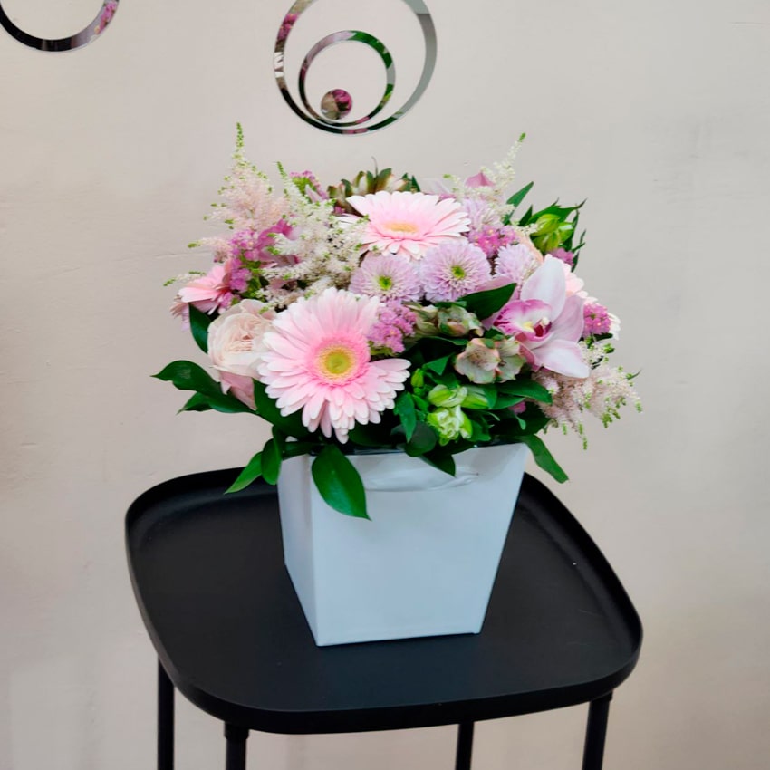 В наши дни цветочная композиция — не просто подарок, а знак уважения к эстетике, ритуал создания счастья, маленькое произведение искусства, наполненное жизнью. Каждый цветок — живое свидетельство природы, каждая коробка — индивидуальная история. Композиция из розового и фиолетового оттенков говорит о ваших чувствах больше, чем тысячи слов, делает любой момент по-настоящему важным и незабываемым. Выбирая такую стильную коробку, вы дарите эмоцию, воплощенную в цветах, гармонию и заботу, которые долго останутся в душе.