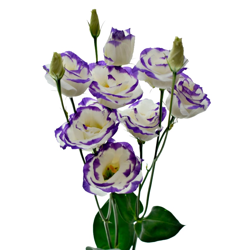 Среди свойств этого сорта выделяются устойчивость к увяданию, способность долго сохранять первозданную чистоту и лёгкий цветочный аромат. Лизиантус хорошо переносит транспортировку, не боится кратковременного недостатка влаги, что особенно важно для флористов и поставщиков. Бело-фиолетовая гамма универсальна — она гармонично сочетается с розами, фрезиями, гипсофилой, хризантемами, создавая композиции от нежных романтических до строго-элегантных.