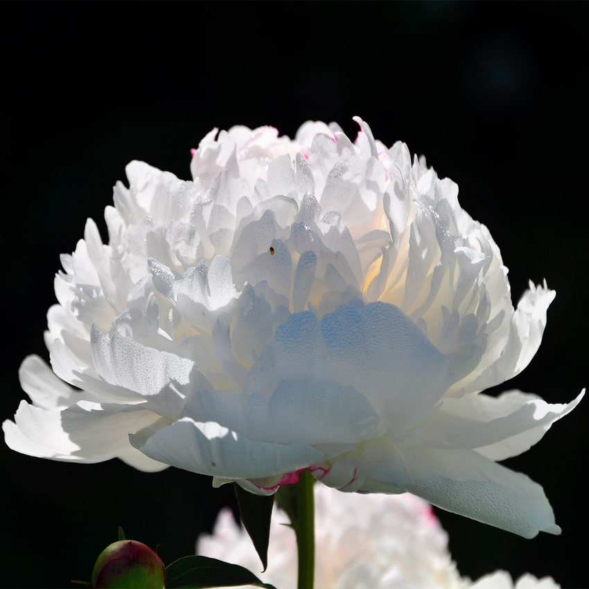 Белый пион очаровывает своей структурой: плотные лепестки образуют совершенный шар, который в момент раскрытия превращается в белоснежное облако. Среди его достоинств выделяют длительное цветение, устойчивость при срезке, способность сохранять свежесть и форму до десяти дней. В букетах он служит выразительным центром внимания, а его нейтральный цвет гармонично сочетается с любыми оттенками - от пастельных до ярких.